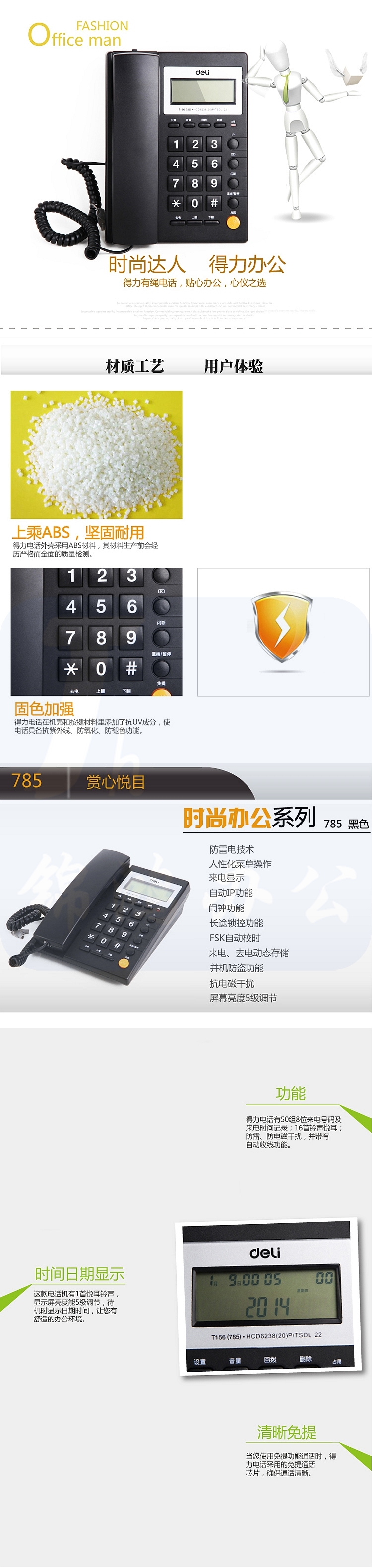 得力 785 电话机 免提通话 可接分机