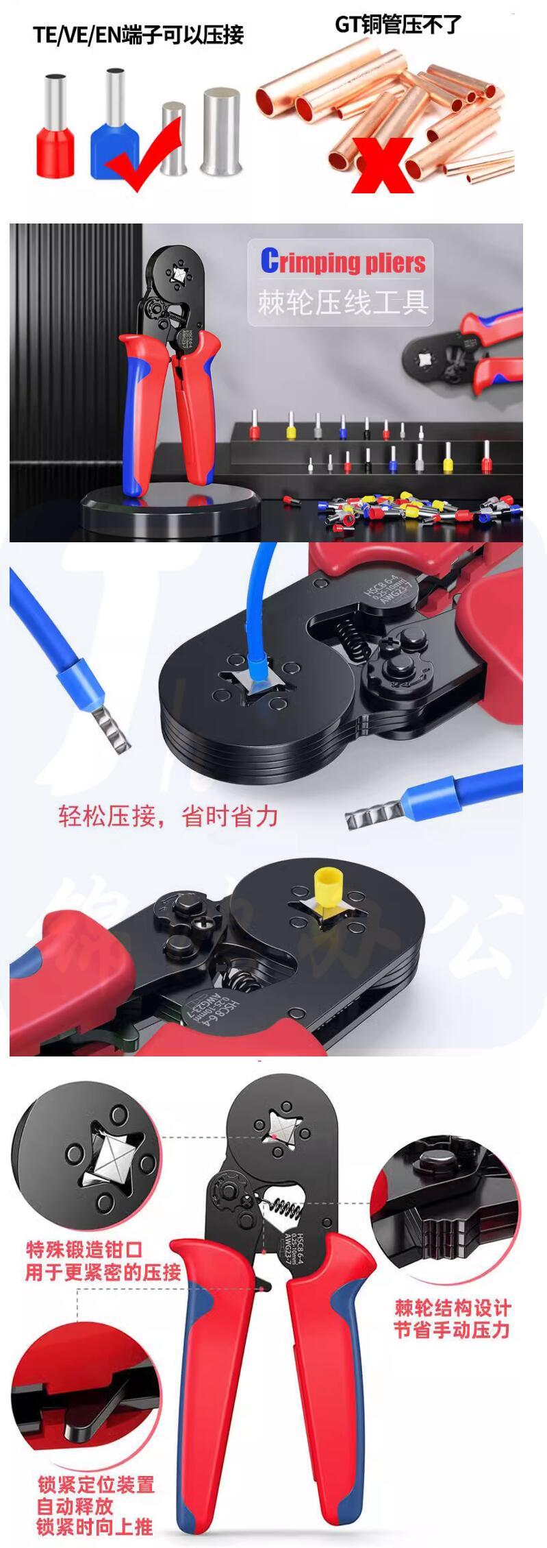 东成 管型针型端子压线钳 HSC86-4A1800冷压端子组合 货号:JC