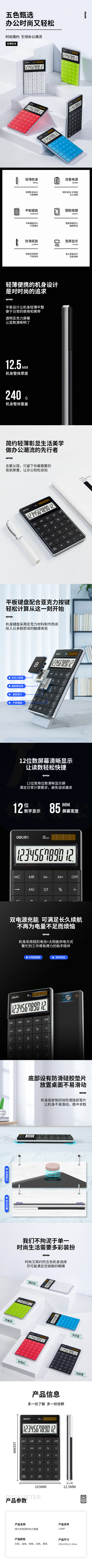 得力1589P 双电源时尚计算器 轻薄机身平板按键桌面计算机(黑)