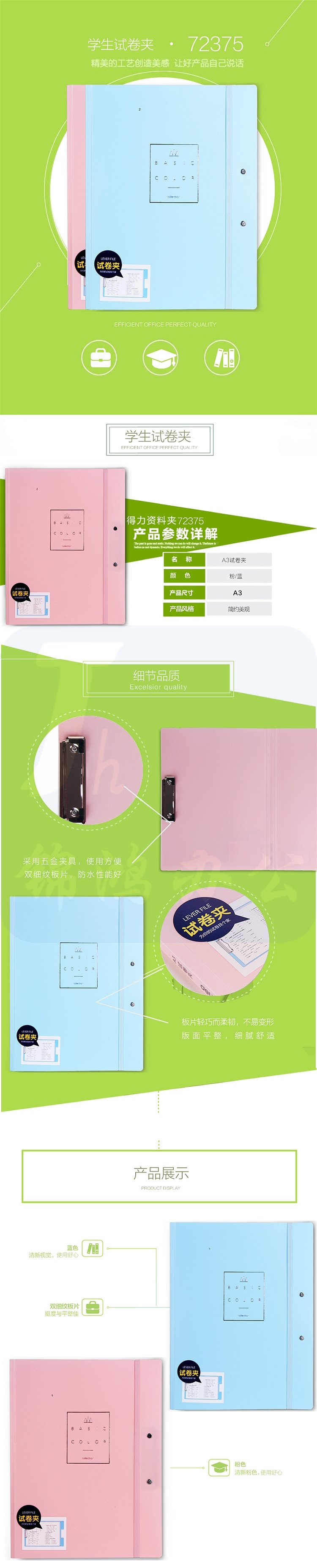 得力 试卷夹展开A3文件PP平板夹金属夹具 72375