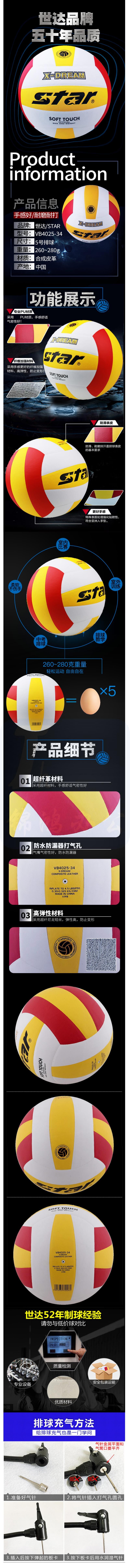 世达(star)VB4025-34 软式 比赛训练 标准5号 耐磨PU 排球 货号:JC