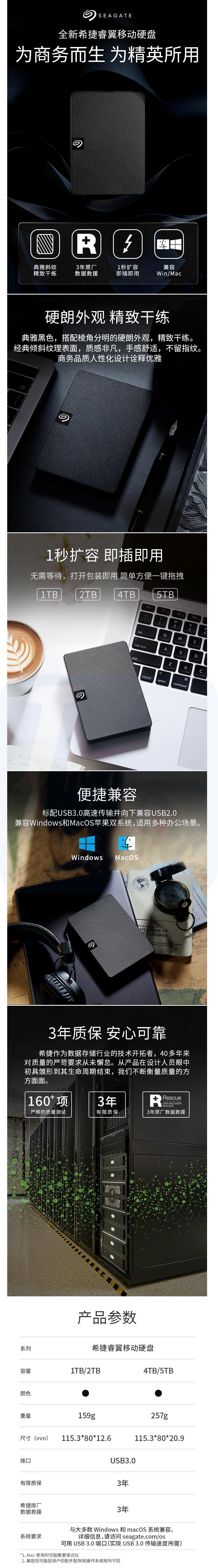 希捷4TB移动硬盘USB3.0 2.5英寸新睿翼(商务黑)