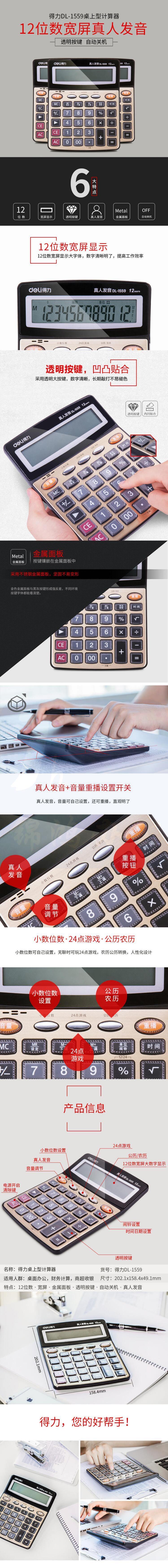 得力 1559 语音计算器12位 金属面板水晶按键(金色)
