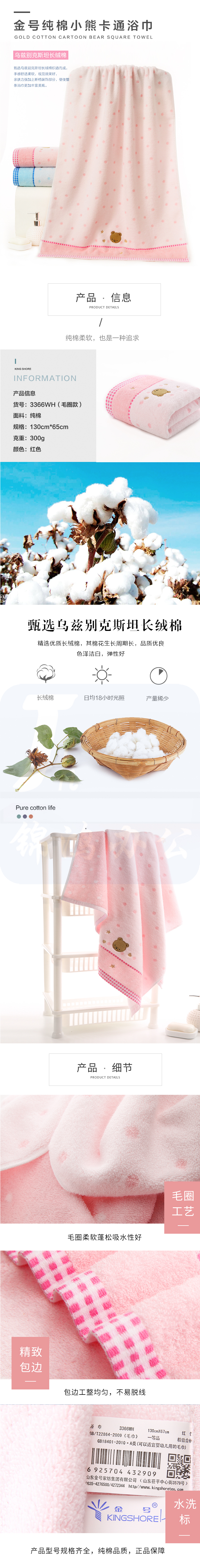 金号 毛巾家纺 无捻小点绣花3366WH浴巾 粉色 130cm*65cm