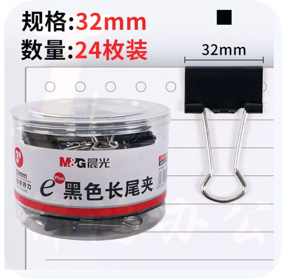晨光 ABS92734长尾夹 黑色 32mm *24枚/筒 5筒装