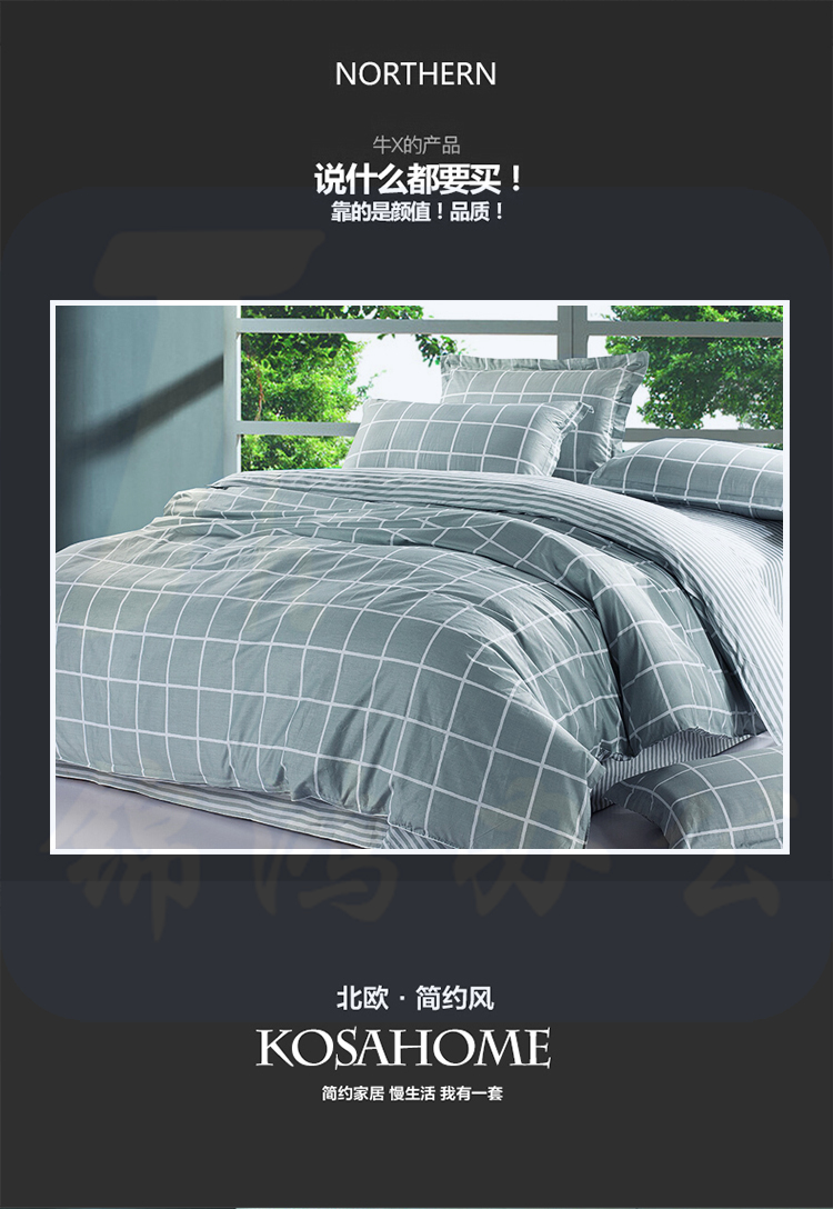 南极人NanJiren 三件套 1.2米床素雅格调 全棉三件套 宿舍单人被套床单枕套 150*200cm