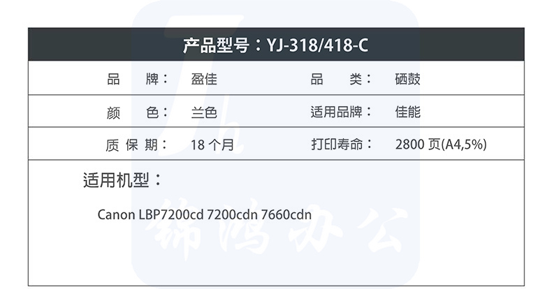 盈佳YJ CN-318/418兰鼓(带芯片) 适用佳能LBP7200cd/7200cdn/7660cdn