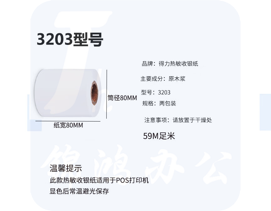 得力 热敏打印纸8*8cm*60米(2卷装)莱茵河热敏纸3203