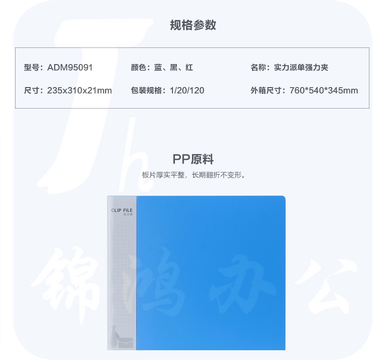 晨光A4实力派单强力文件夹蓝 ADM95091
