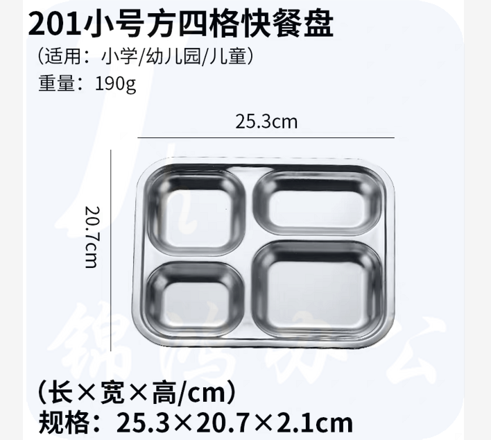 201小号方四格快餐盘 四格餐盘 25.3*20.7*2.1cm 货号:JC