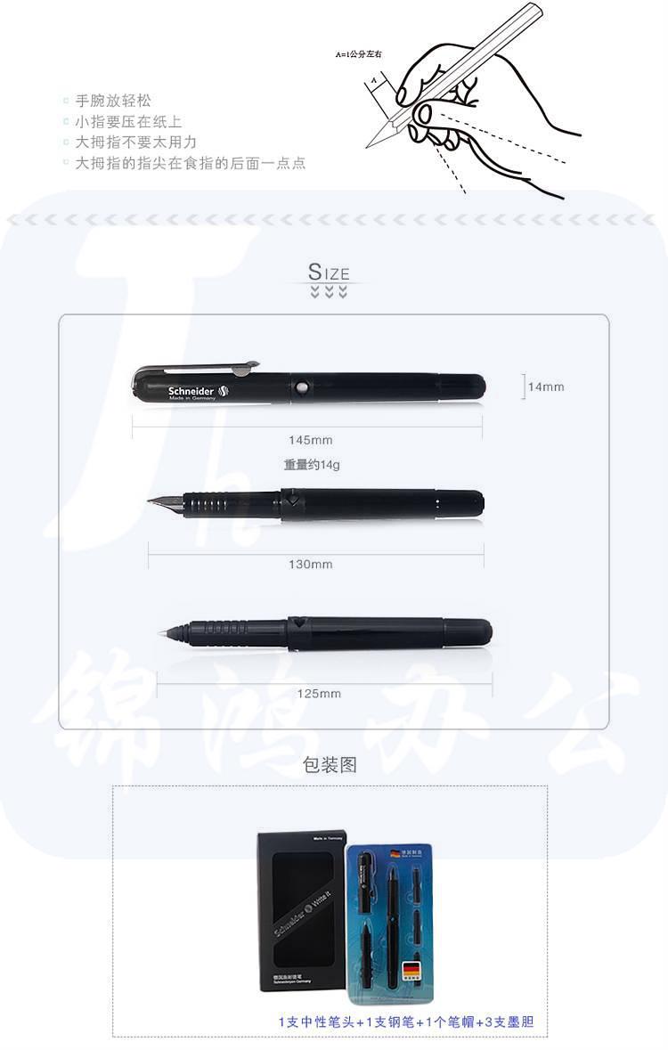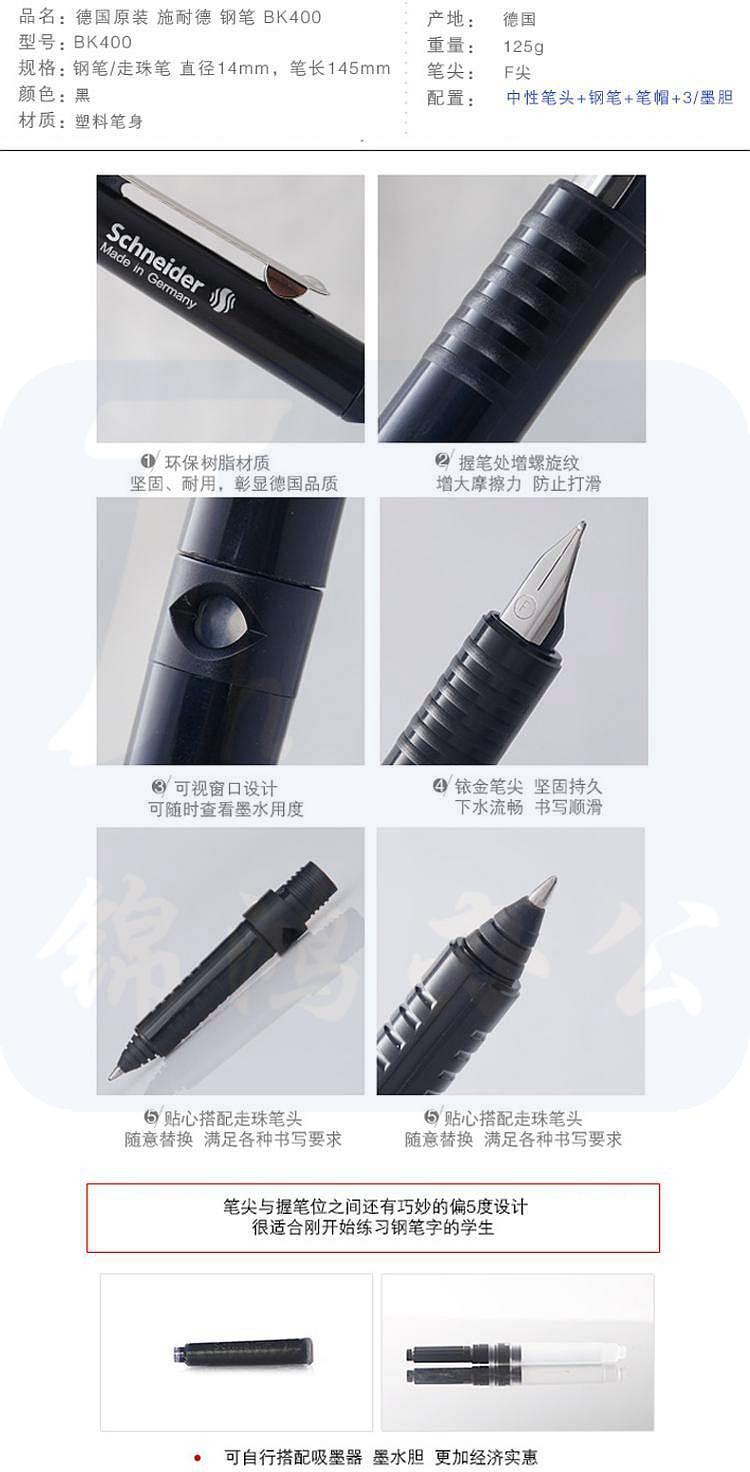 施耐德 4099 钢笔套装黑杆(钢笔+走珠笔+3支黑墨胆+笔盒) F咀 黑色 1套 按套销售