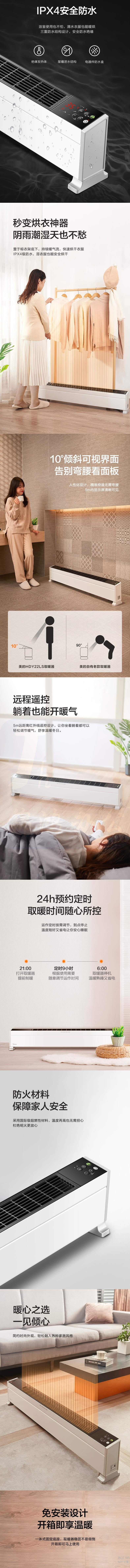 美的 HDY22LS 取暖器 内置加湿 电暖气 踢脚线移动地暖器 (智能遥控)