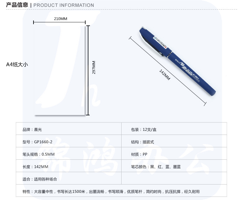 晨光 中性笔大容量 GP1660-2 黑色 0.5mm 12支/ 盒
