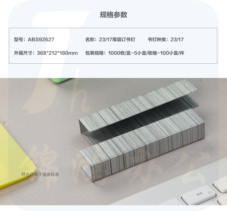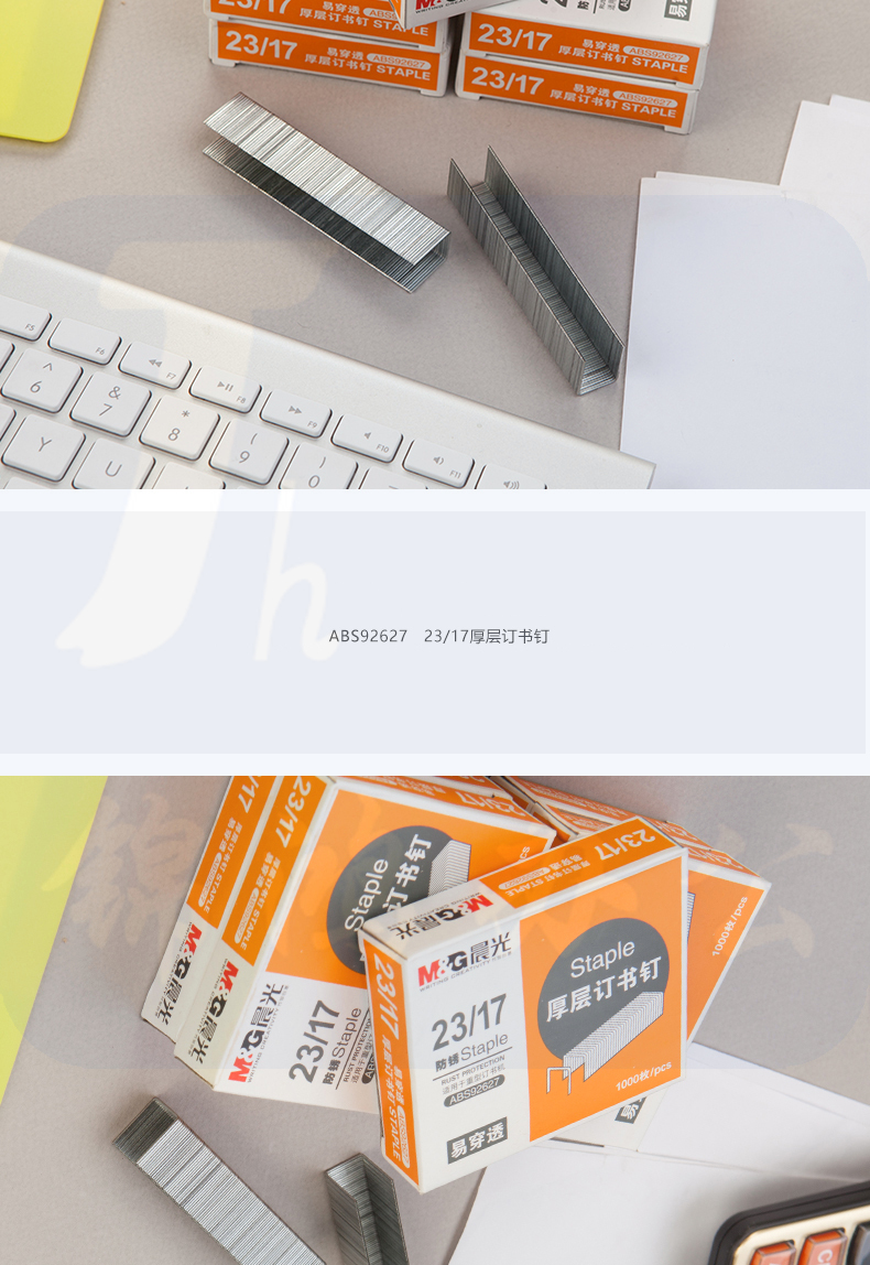 晨光 23/17厚层订书钉订书针ABS92627 一条5盒装
