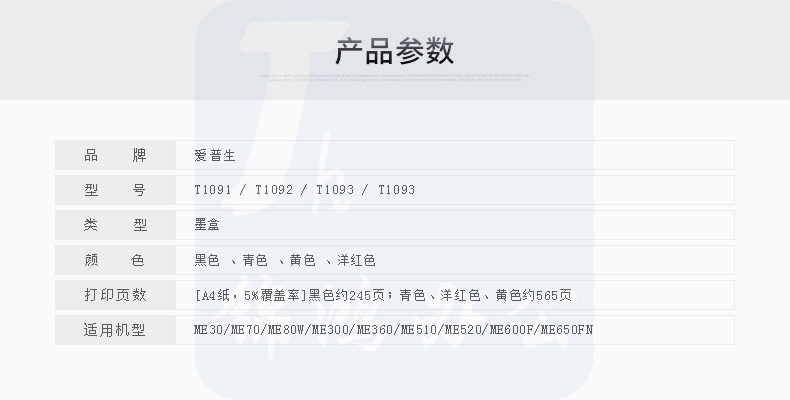 爱普生(Epson)T1094黄色墨盒 C13T109480(适用ME30/300/360/510/600F/650FN/700FW)
