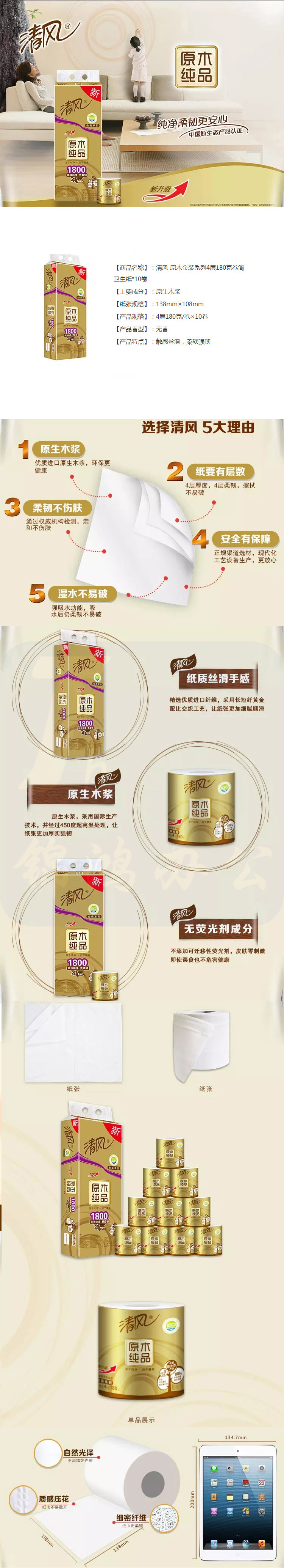 清风 原木纯品 金装卷纸 B20A8J 138*108mm180g 四层 10卷