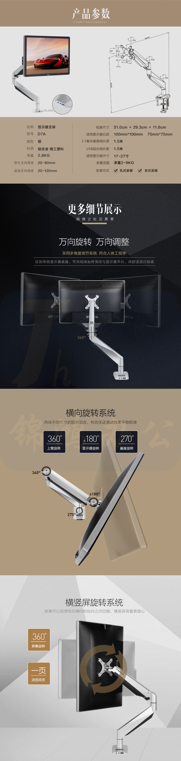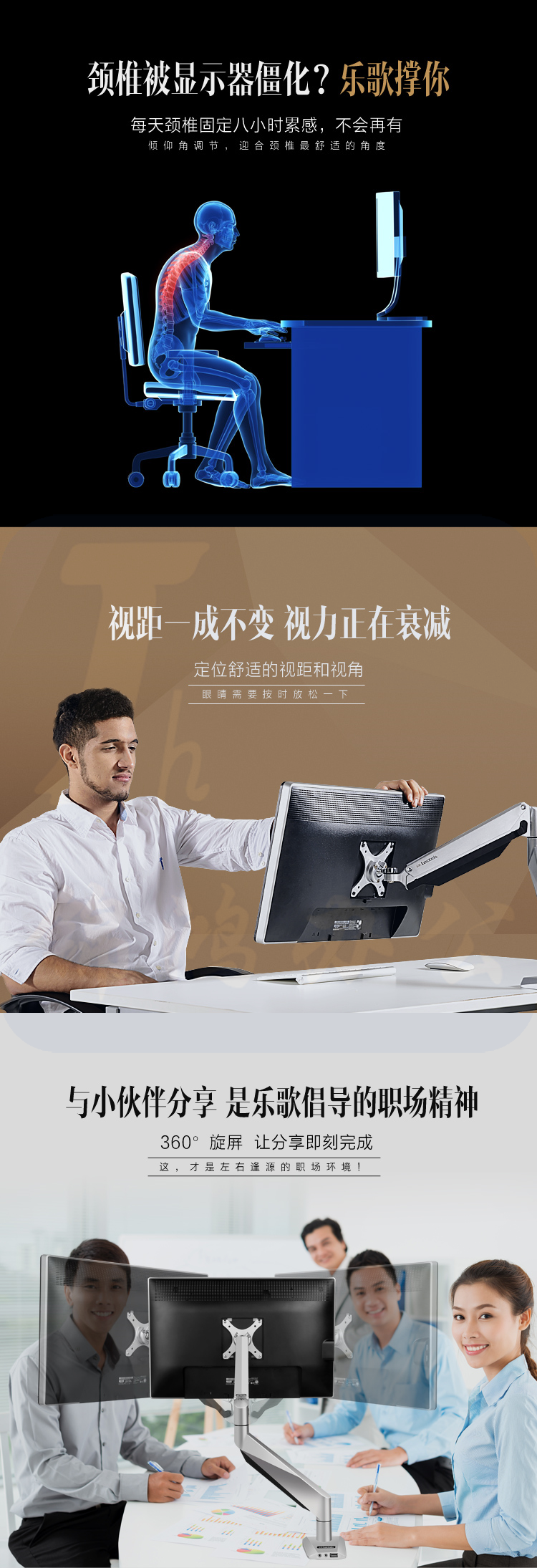 乐歌(Loctek)D7A 电脑支架显示器支架 旋转升降伸缩支架