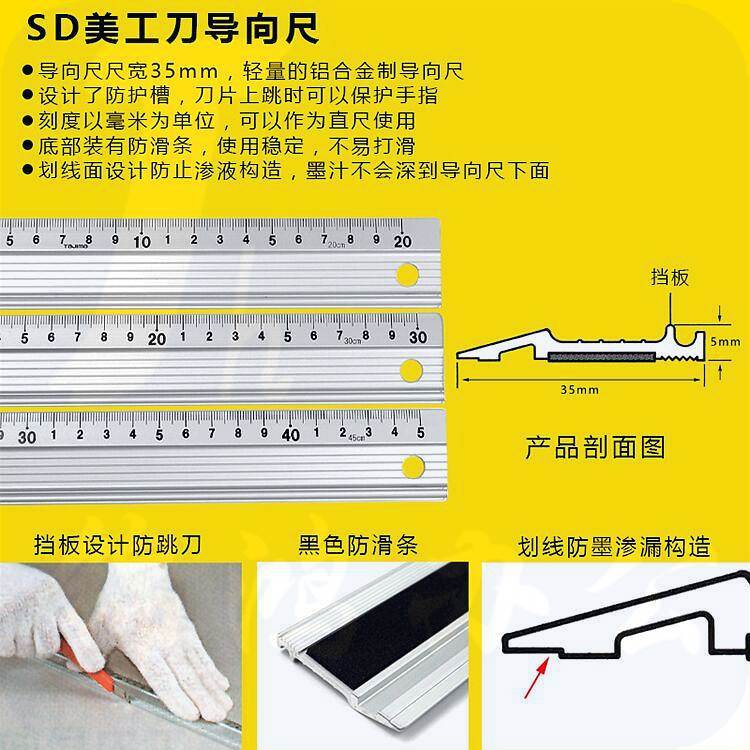 品牌:日本田岛; 尺寸:450*35MM; 材质:全铝合金煅烧,底部安装橡胶滑垫,另配独特的防护槽,使用更安全,省心; 包装规格:20把/盒/80把/箱;
