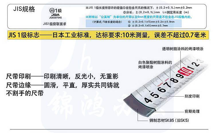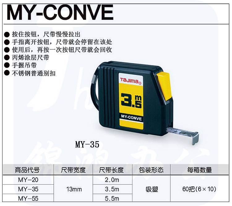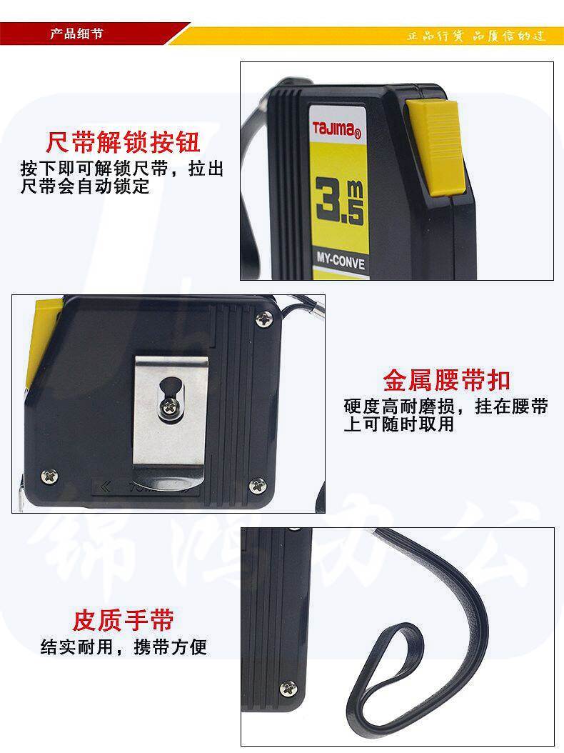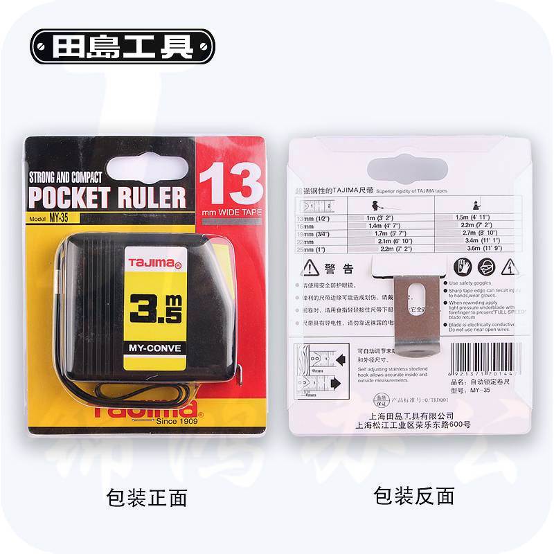 品牌:日本田岛; 尺寸:尺带3.5M*13mm; 材质:尺带进口SK85钢,弹簧进口SK85钢,尺壳ABS树脂,JIS1级,0点补正移动尺爪,另配手带,测量精密,简单,方便; 包装规格:6把/盒/60把/箱;