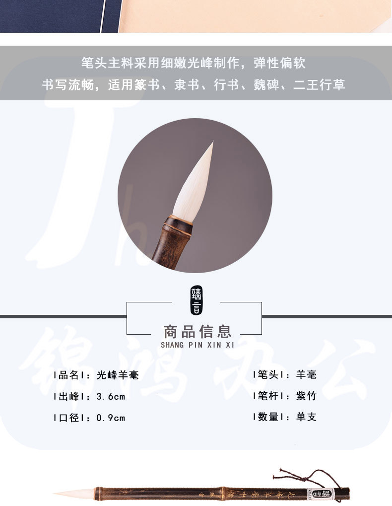 毛笔羊毫中楷 光锋纯羊毫正品 文房四宝 初学者篆书隶书行楷书法练习湖笔