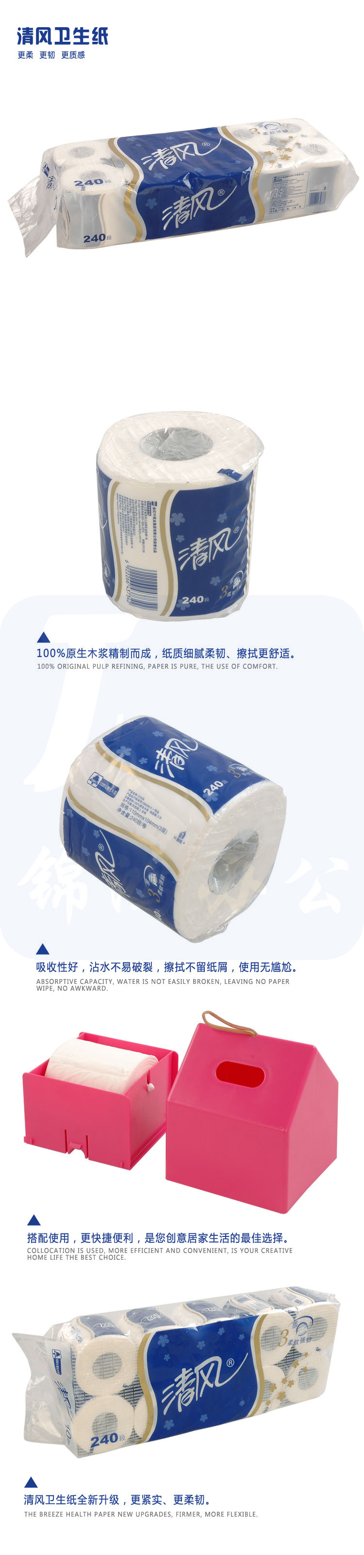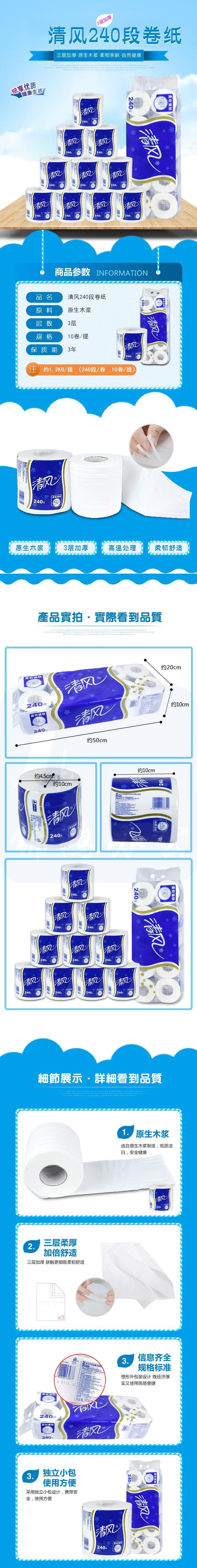 清风 卷筒纸3层240段 B22AT3BN 10卷/提*10提/包