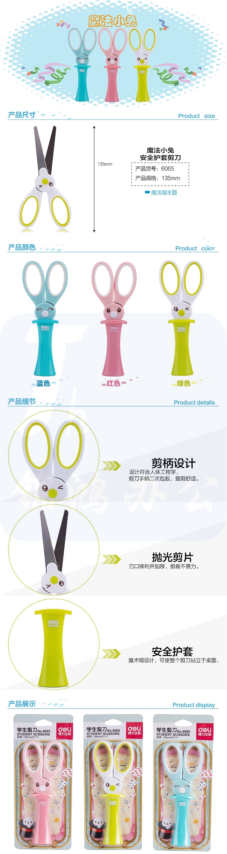 得力 6065 学生剪刀 135mm (单位:台) 混色