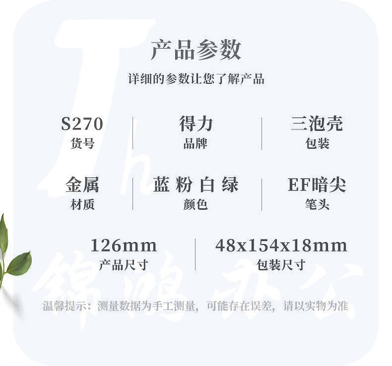 得力 S270 金属钢笔(浅绿)(1支/盒) 1支/盒 按盒销售