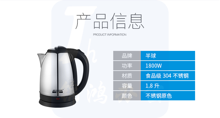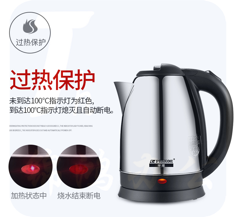 半球(Peskoe)电水壶1.8L 食品级304不锈钢电热水壶烧水壶