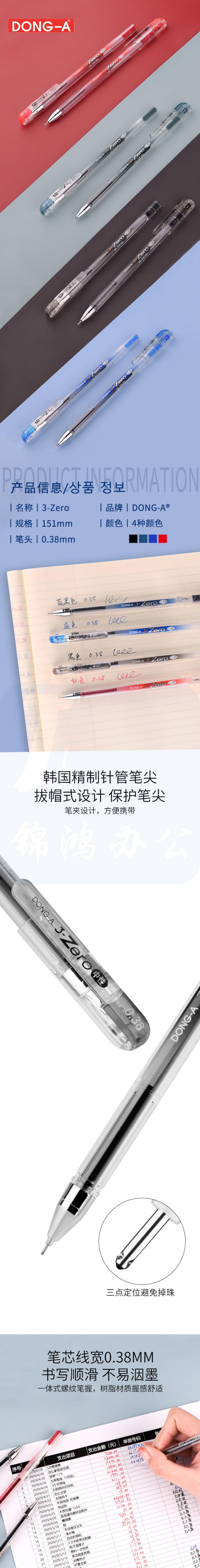 南韩 东亚 中性笔-DONG-A 3-Zero 0.38(黑色) 12支/盒