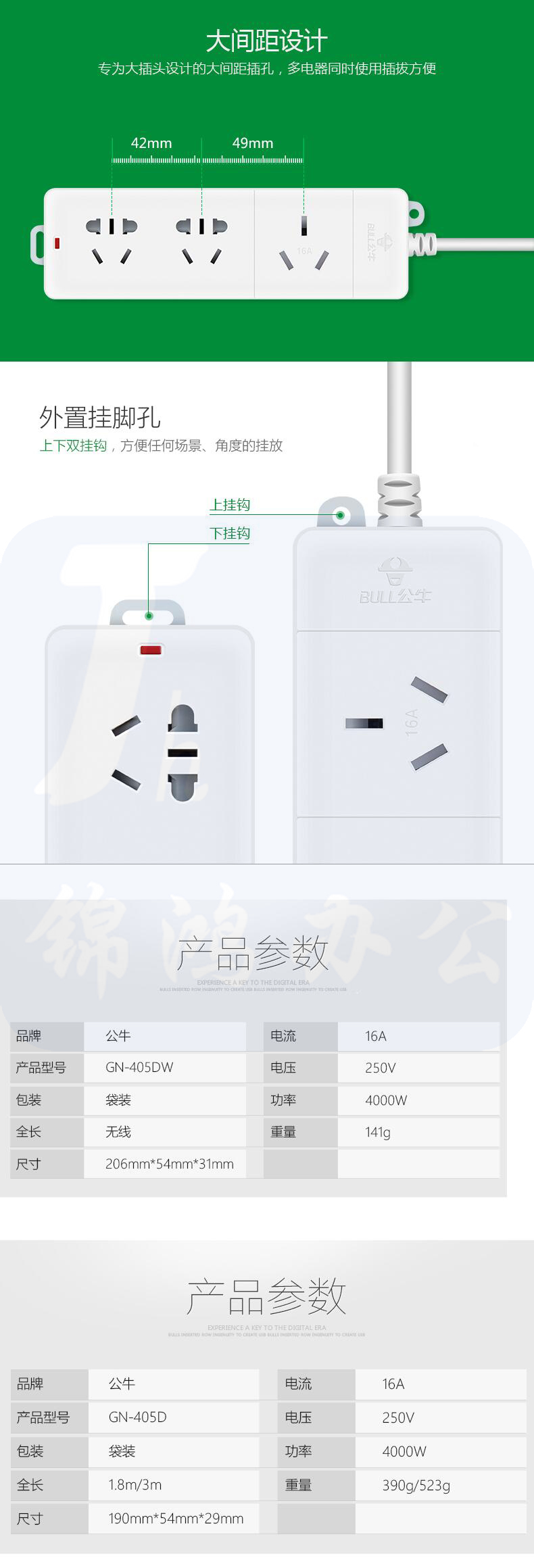 BULL/公牛接线板 GN-405D 无线袋(新国标)
