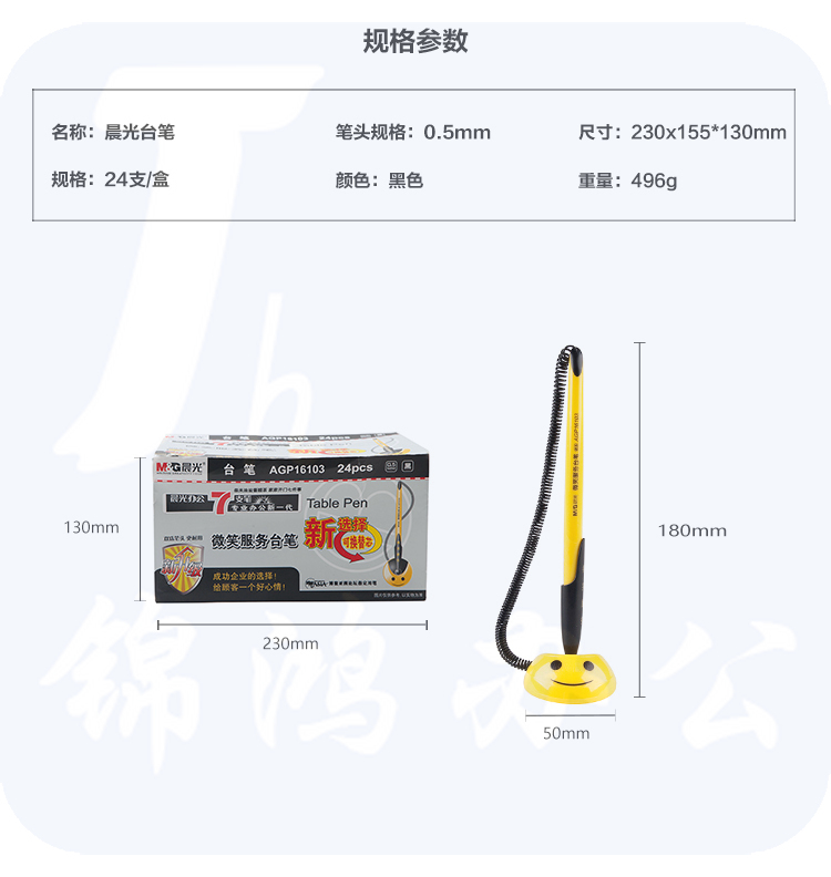 晨光AGP16103微笑0.5mm黑色台笔 可黏贴签字笔中性笔