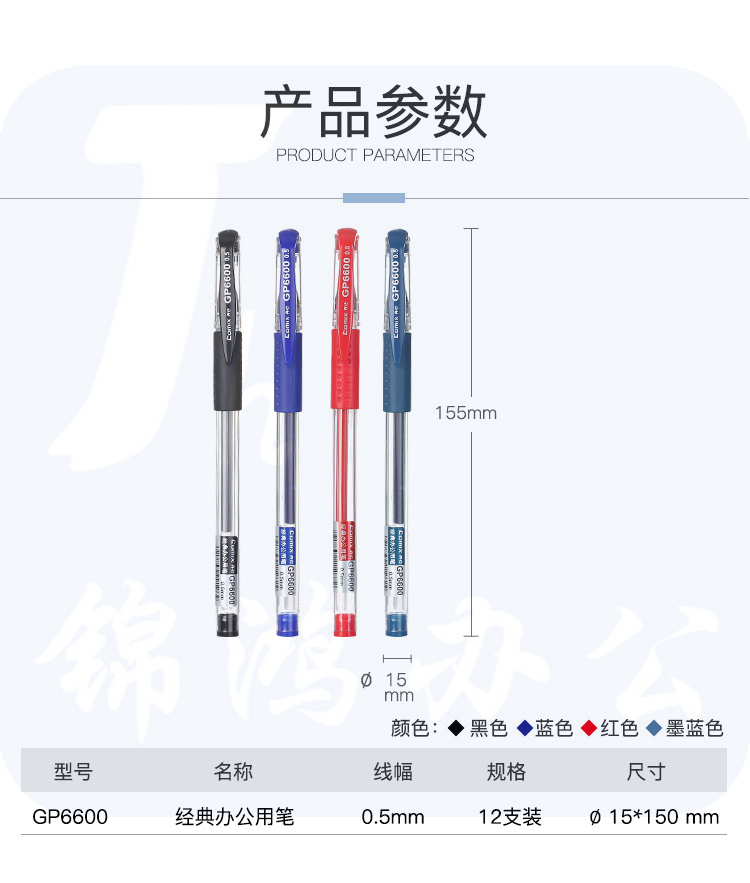 齐心 GP6600 经典办公用笔 0.5mm 黑色 按支销售