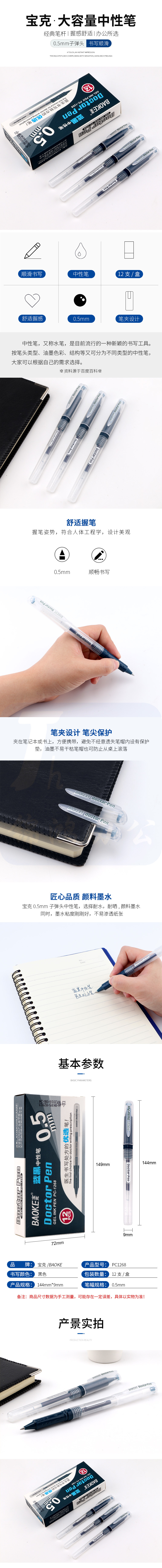 宝克/BAOKE PC1268 大容量财会书写水笔 学生作业中性笔 货号:LJ
