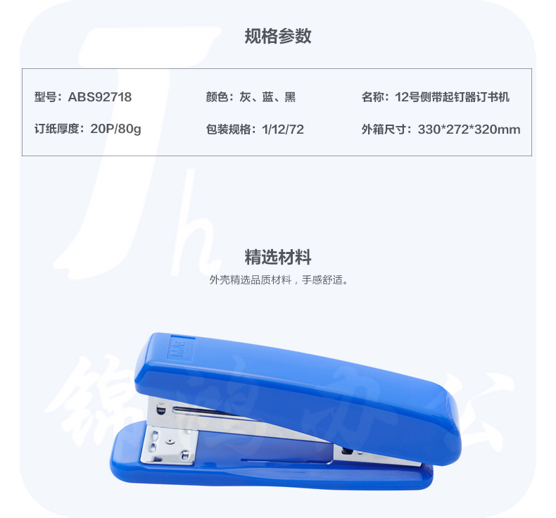 晨光 12号侧带起钉器订书机 金属拉杆办公订书器 ABS92718 黑