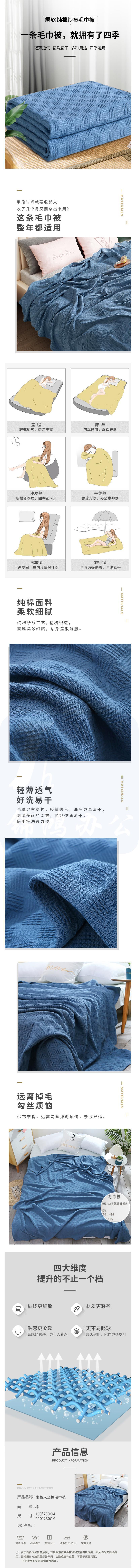 南极人 纯棉毛巾被 空调毯 夏季薄毯子 200*230cm 货号:JC