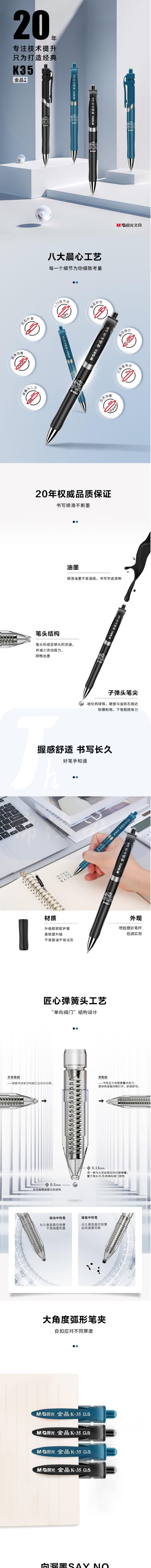 晨光 AGPK3507 墨蓝0.5MM中性笔金品签字笔处方笔12支
