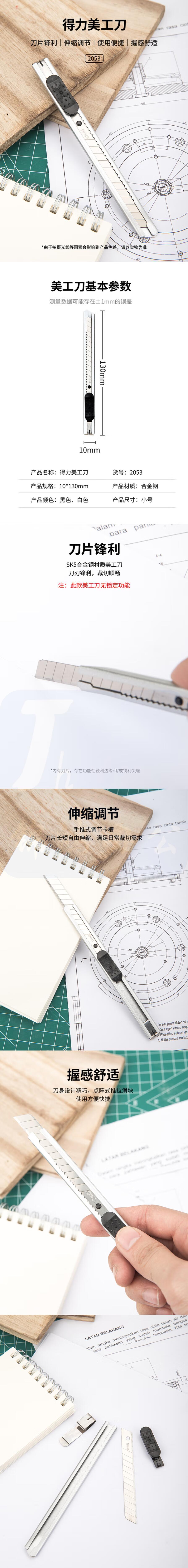 得力 2053小号美工刀 9mm金属外壳裁纸刀附折刀器