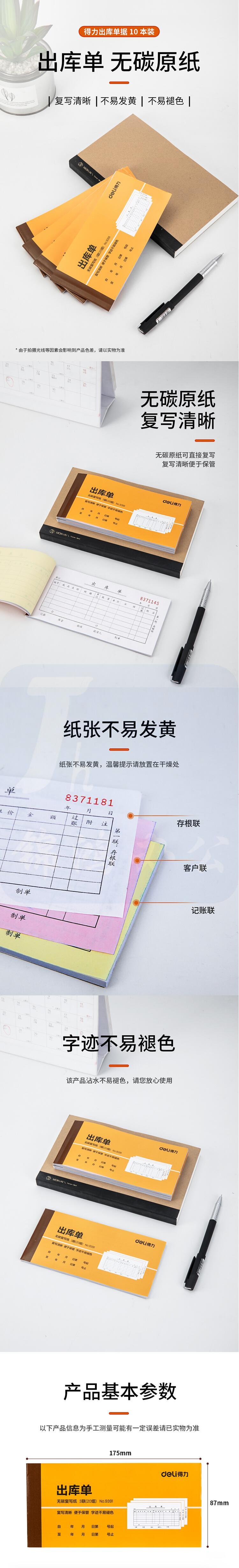 得力(deli) 9392 10本无碳复写三联入库单据