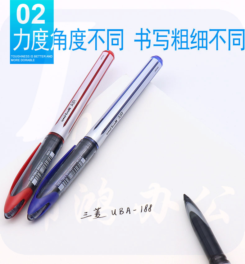 三菱uni-ball AIR签字笔UBA-188-M 顺滑草图笔绘图笔自由控墨黑科技学生0.5m 黑色 12支