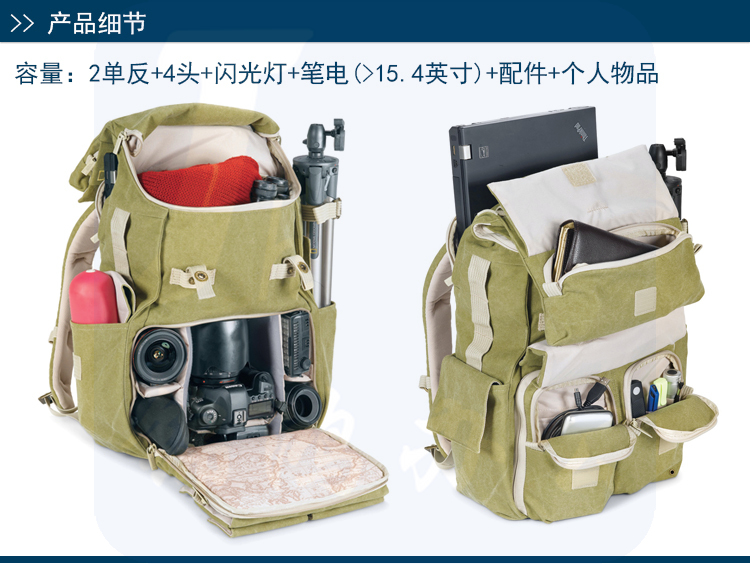 国家地理NG5160双肩摄影包男女休闲单反包数码背包防水帆布相机包 国家地理商标卡其色