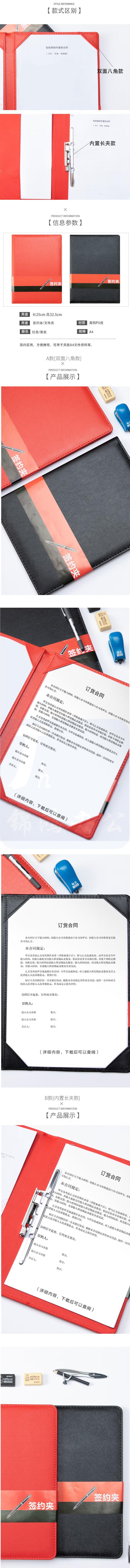 信发TN-B1-01 商务签约本A4皮革金属长夹/资料档案整理夹 红
