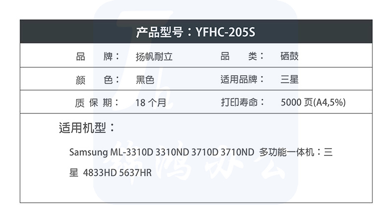 扬帆耐立YFHC SX-205S黑鼓(带芯片)3310ND 3710ND 4833HD 5637