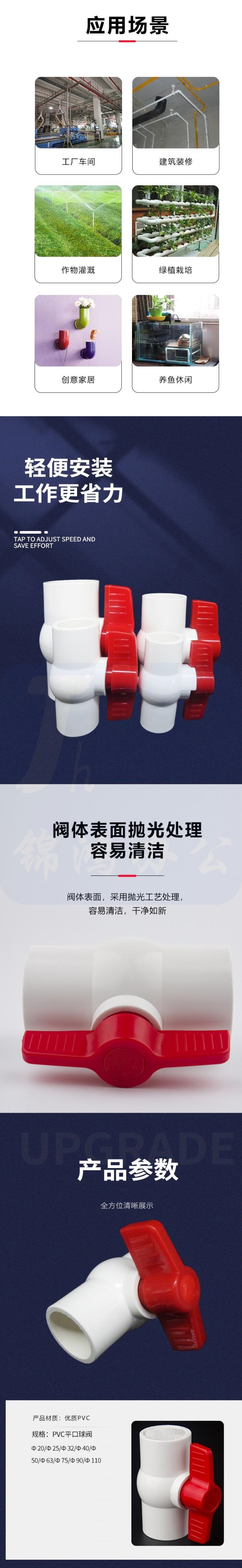 PVC平口球阀 插口开关阀门 塑料给水管阀门 50mm 货号:JC