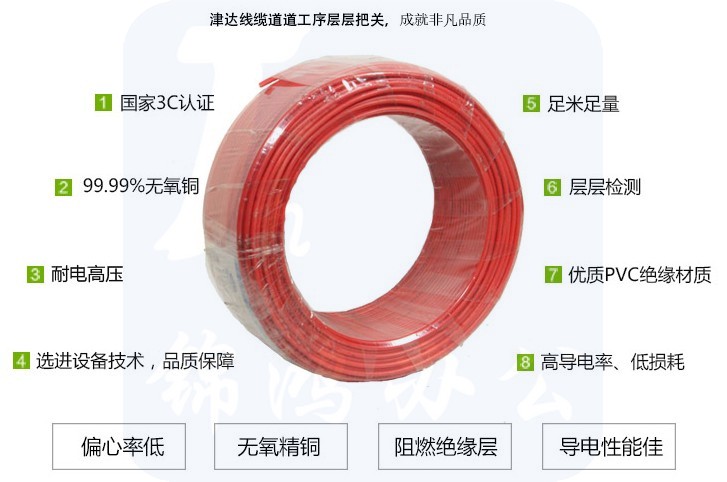 津达电缆 ZCN-BV-绿色6平方 耐火阻燃塑铜线 100米/盘