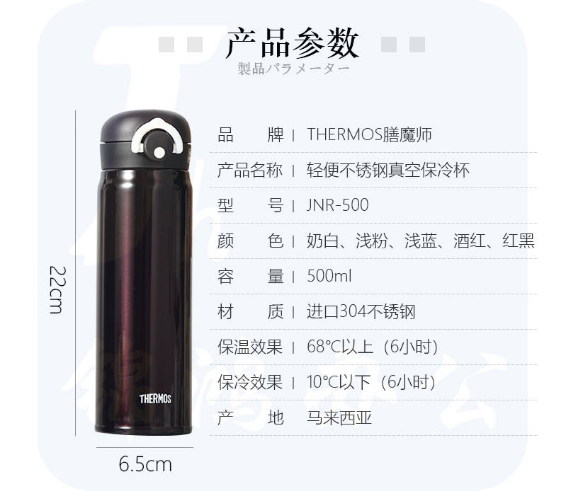 膳魔师 不锈钢保温杯500ml JNR-500CRW