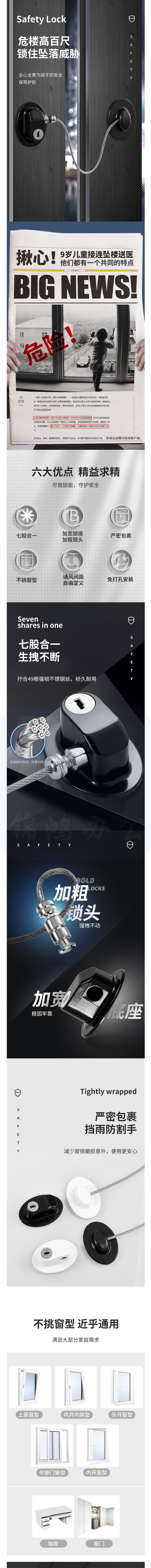 卡贝 窗户锁扣 推拉门锁 儿童安全防护安全锁