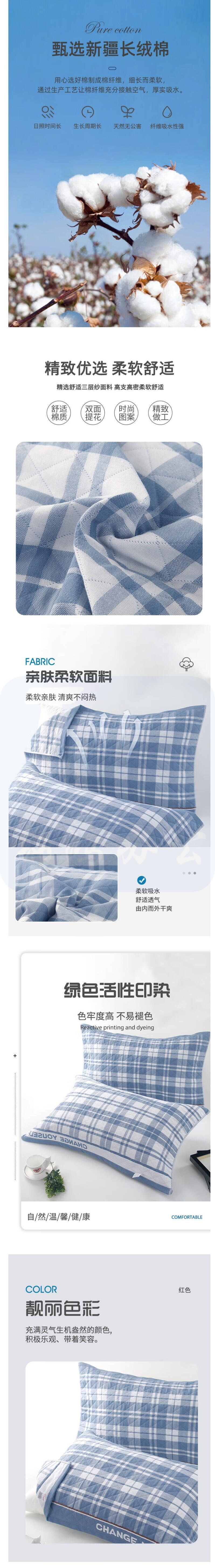洁丽雅 枕巾 三层提花透气枕头巾 格律-蓝 单只