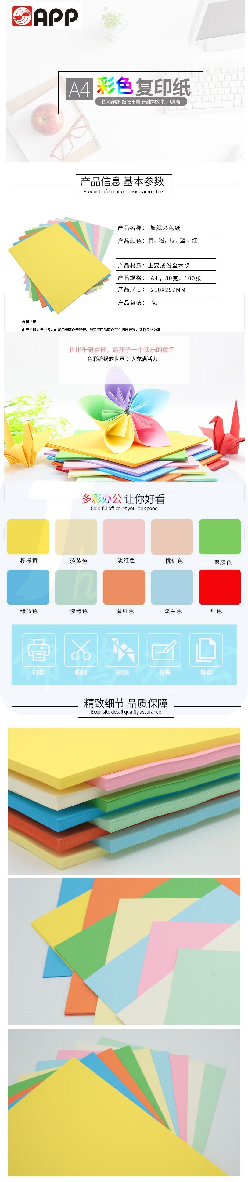 A4 80g彩色卡纸 儿童手工折纸剪纸彩纸 非硬卡纸 100张/包 桃红色