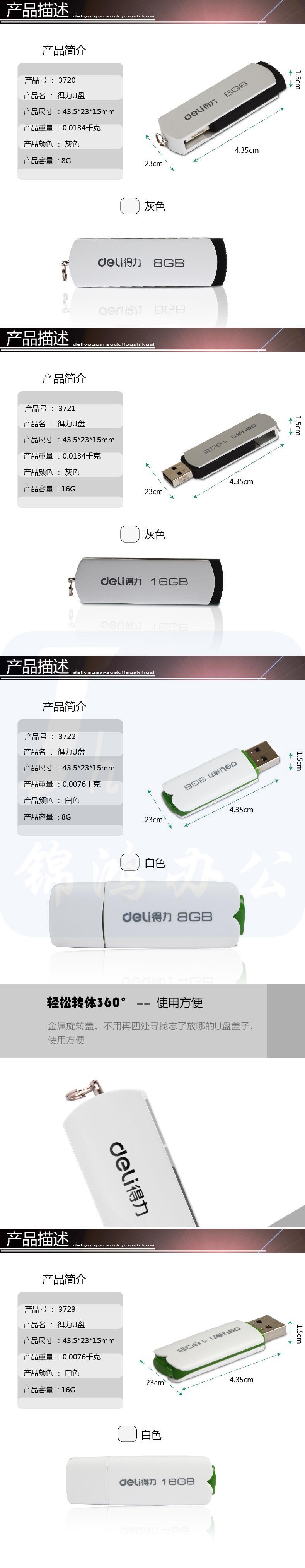 得力(deli)3721 U盘16g高速读写 时尚小巧 办公用品 金属U盘16G