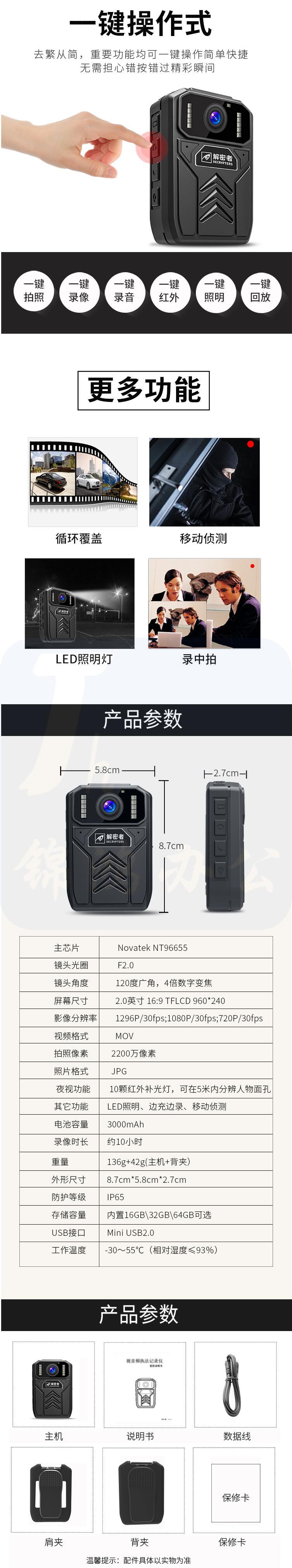 解密者 DSJ-A5 64G执法记录仪 执法仪 现场记录仪 内置64G